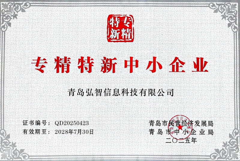 2025青島弘智信息科技有限公司再度榮膺"專精特新中小企業(yè)"稱號——以創(chuàng)新驅(qū)動發(fā)展,以專業(yè)鑄就卓越根據(jù)工信部《優(yōu)質(zhì)中小企業(yè)梯度培育管理暫行辦法》《青島市優(yōu)質(zhì)中小企業(yè)梯度培育管理實施細則》和《關(guān)于組織開展2025年度專精特新中小企業(yè)培育認定和復(fù)核工作的通知》要求,經(jīng)企業(yè)申報、區(qū)市推薦、第三方機構(gòu)審核等嚴格程序,青島弘智信息科技有限公司憑借持續(xù)的創(chuàng)新能力和顯著的行業(yè)貢獻,順利通過2025年度復(fù)核,再度成功獲...